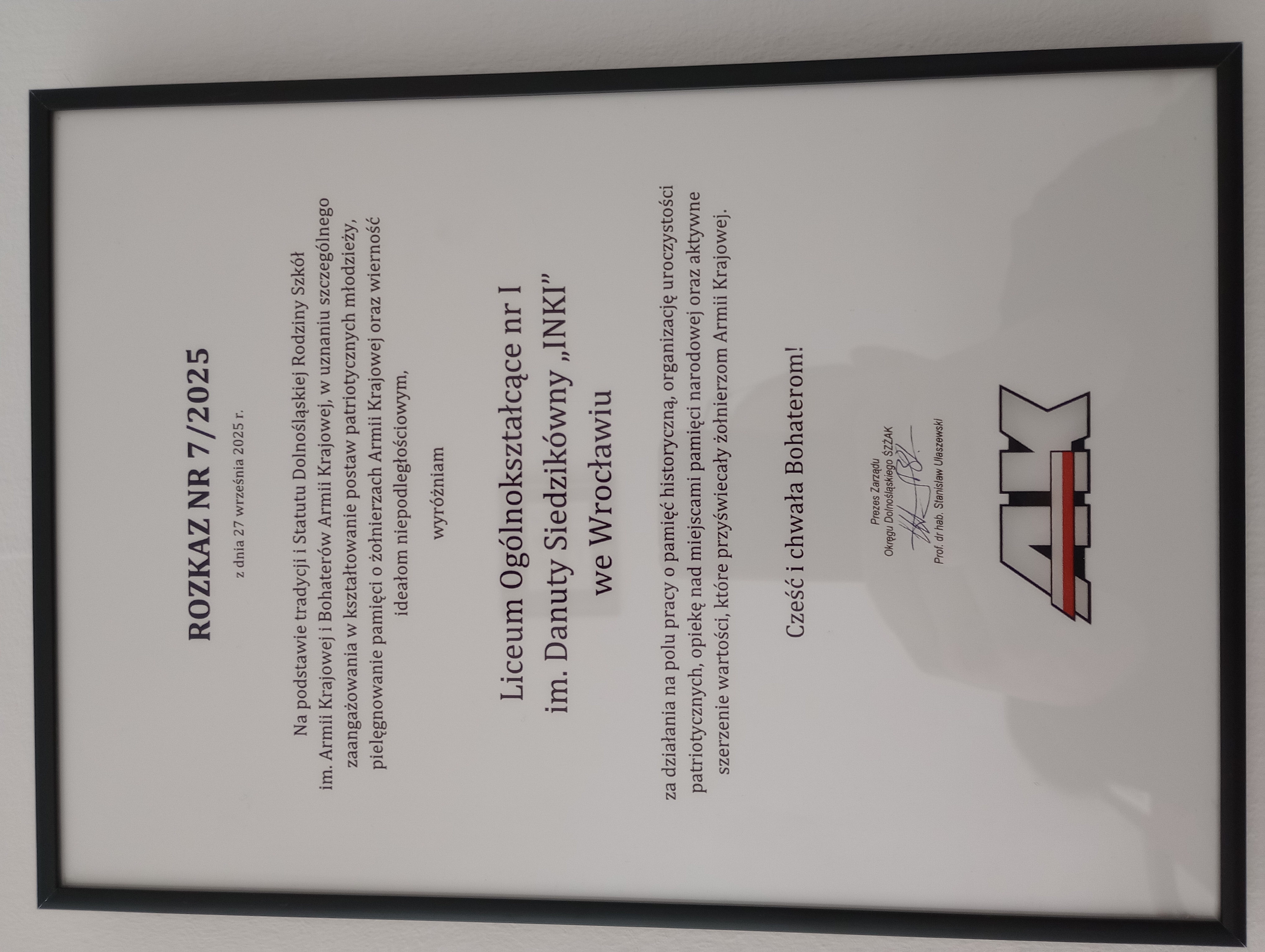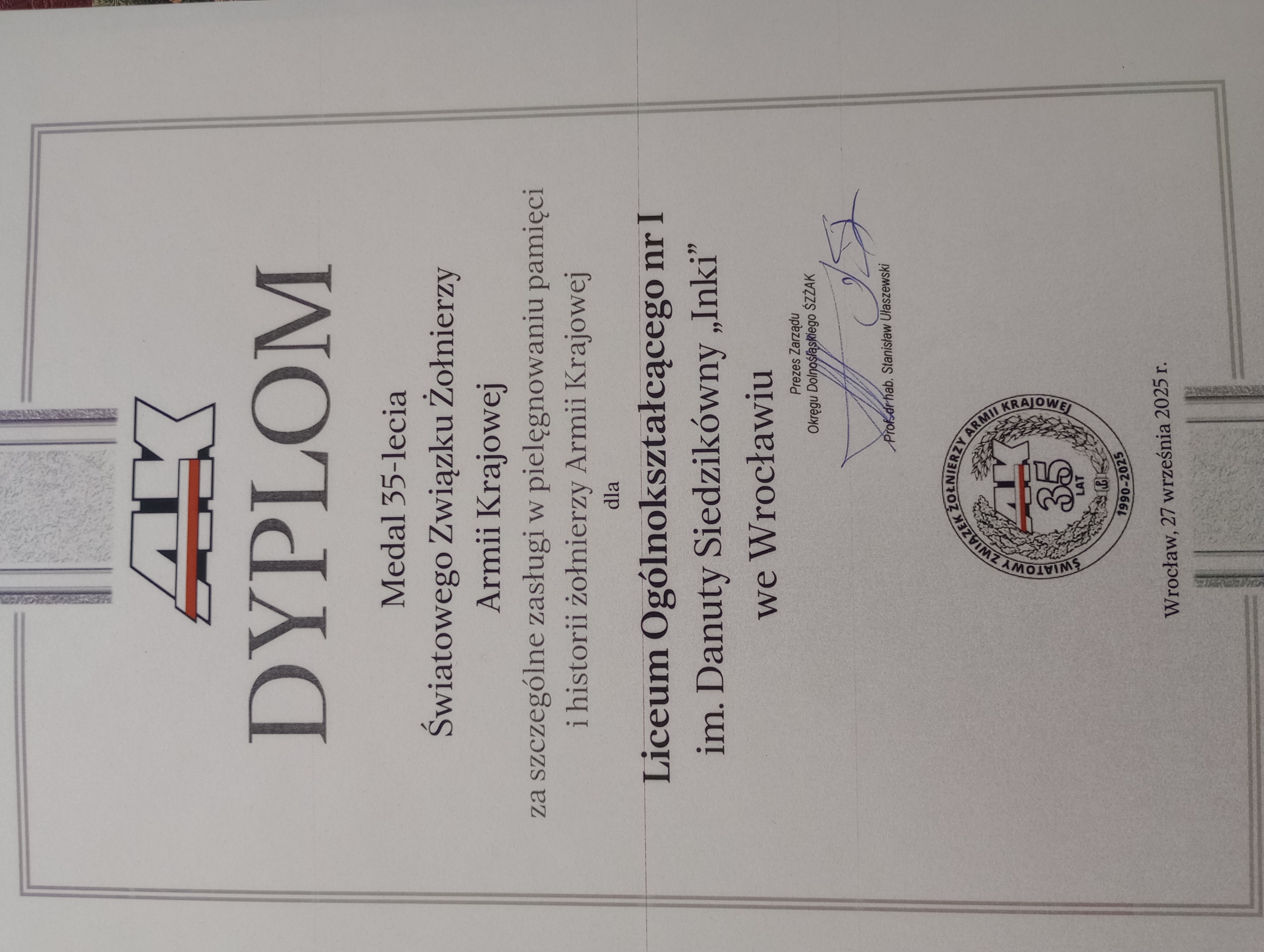 29 września 2025 roku w sali sejmikowej Dolnośląskiego Urzędu Wojewódzkiego odbyła się Konferencja Dolnośląskiej Rodziny Szkół im. Armii Krajowej i Bohaterów Armii Krajowej, którą zorganizowano z okazji 18-lecia istnienia sieci placówek promujących wiedzę o bohaterach II wojny światowej.