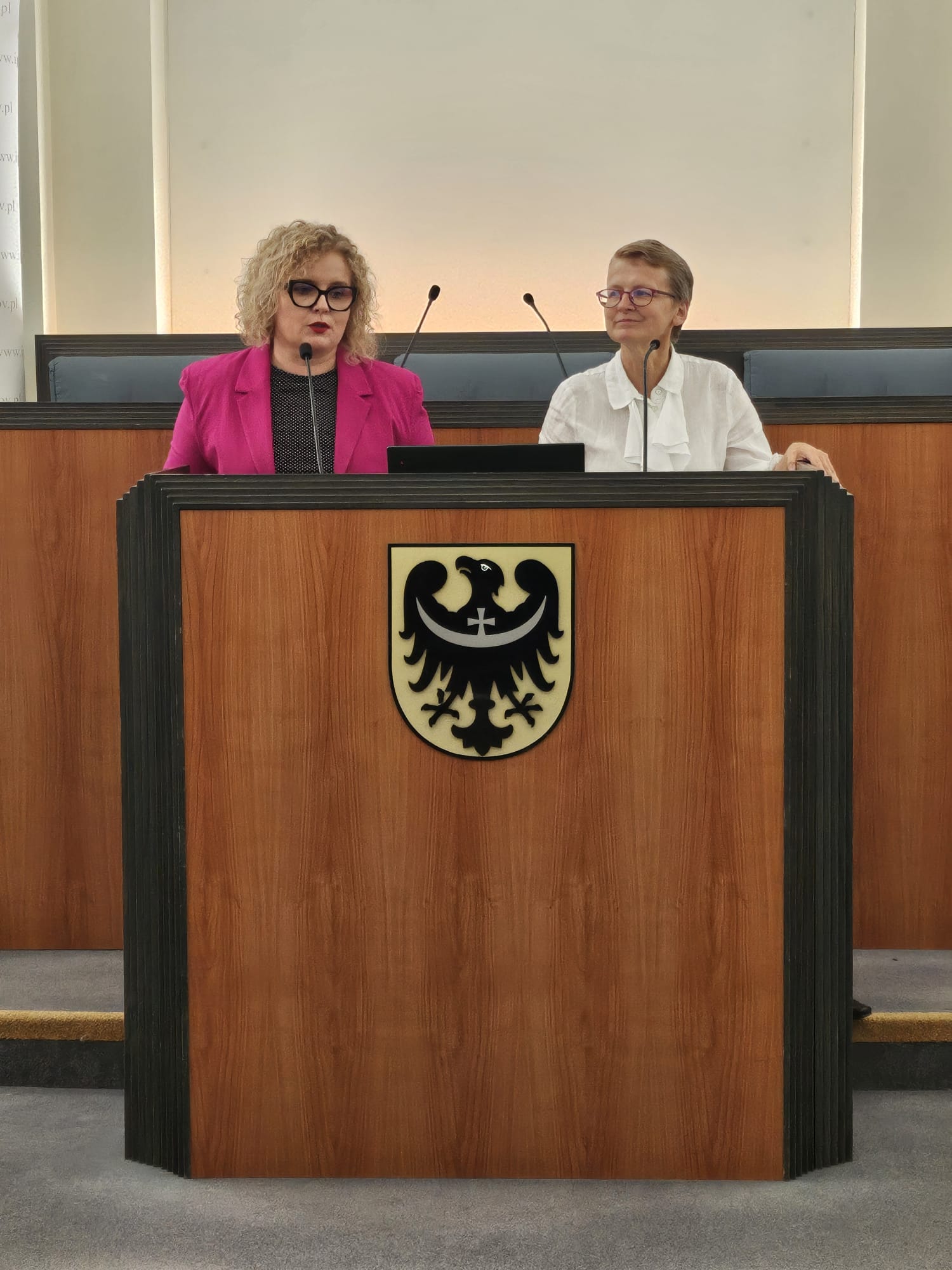 O godzinie 11.40 wszyscy zgromadzeni w sali sejmikowej mieli okazję wysłuchać interesujący wykład „Czy Patronka jest potrzebna szkole?”, przygotowany przez nauczycielki LO I – Katarzynę Moskwę i Jolantę Wróblewską.