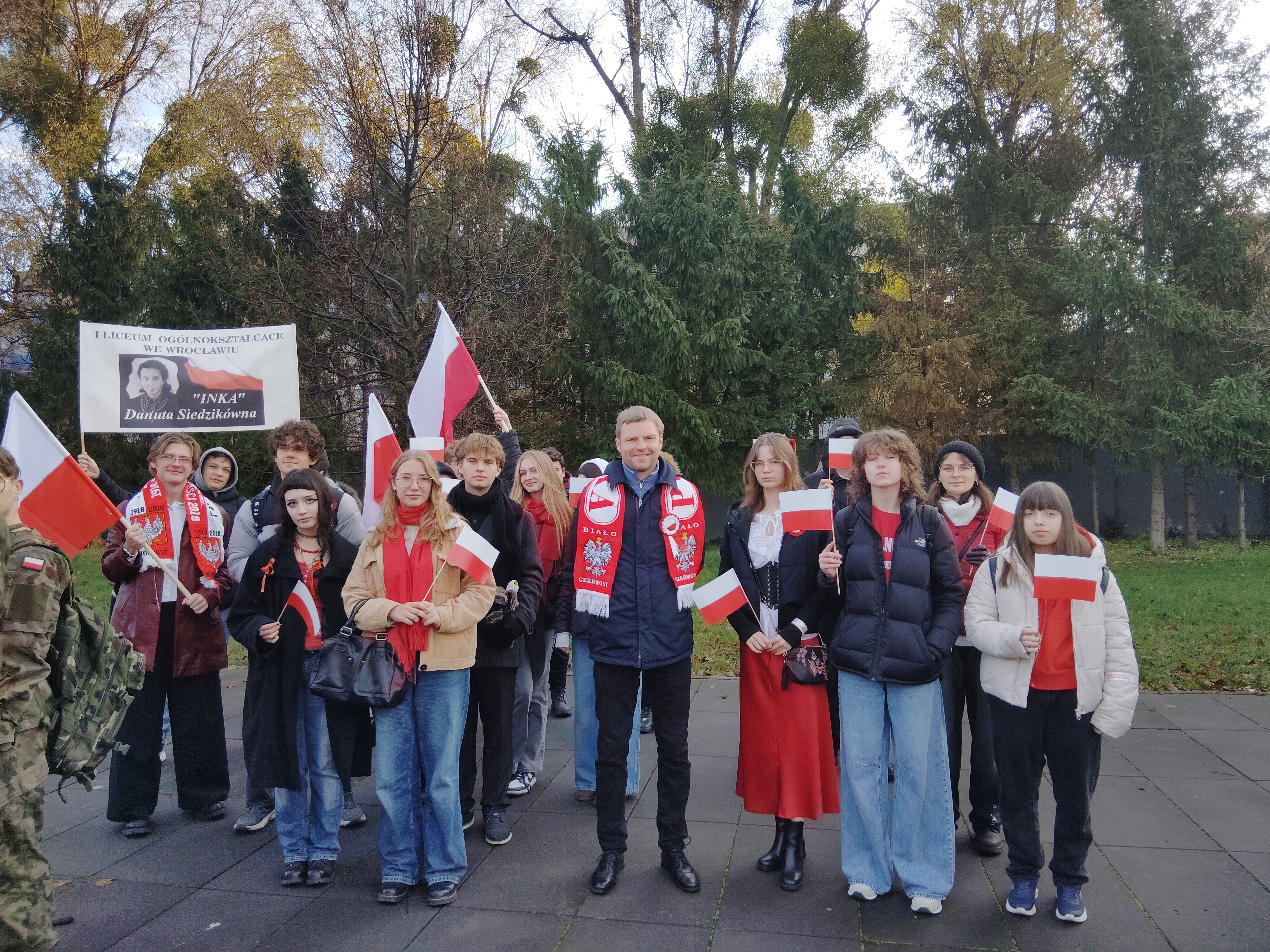 11 listopada 2025 roku w całym kraju hucznie świętowaliśmy 107. rocznicę odzyskania niepodległości przez Polskę. W miejskie obchody tego święta włączyli się nasi licealiści, którzy wspólnie z nauczycielem historii - p. Arturem Bilskim wzięli udział w XXII Radosnej Paradzie Niepodległości.